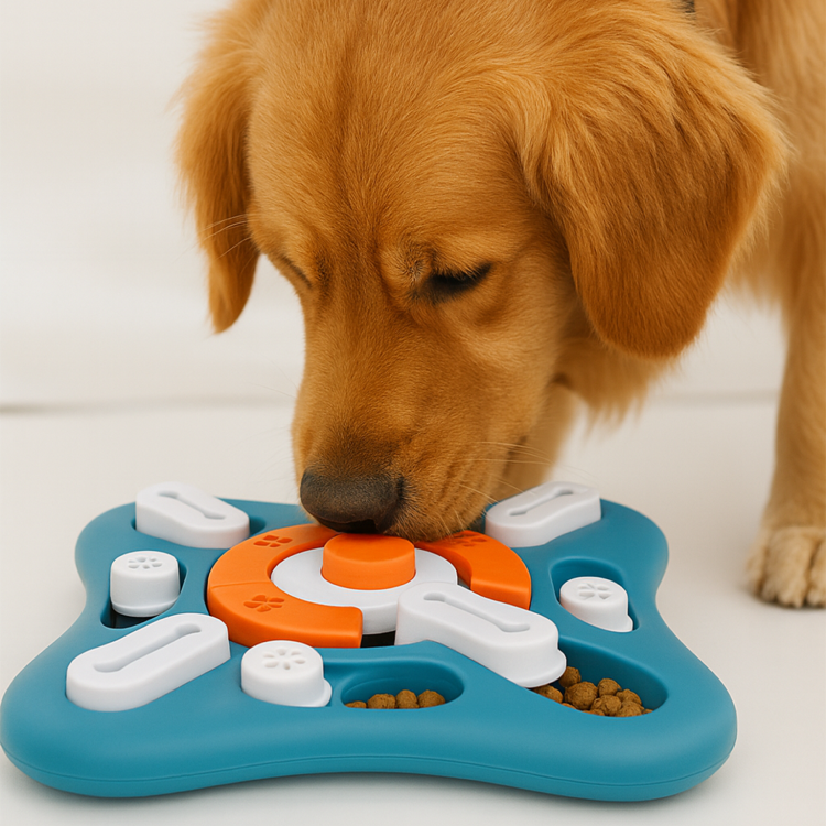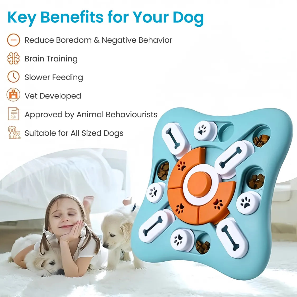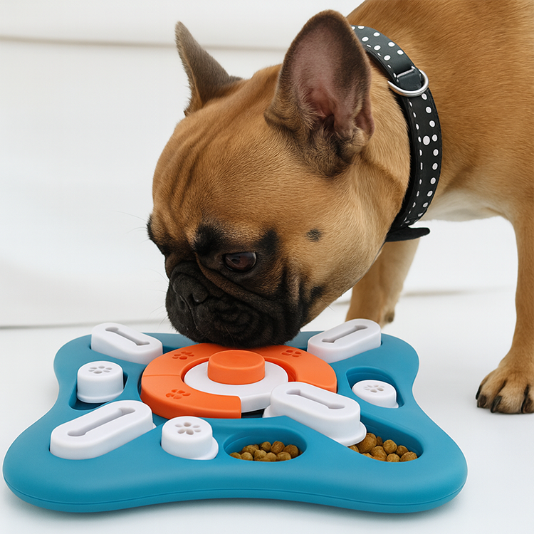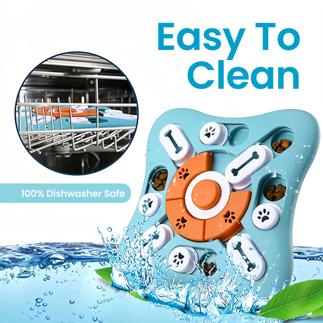 Keep your dog’s mind sharp and their tail wagging with our interactive puzzle feeder. Designed with sliding compartments and hidden treat wells, this toy turns mealtime or snack time into a fun mental workout. It helps reduce boredom, slows down fast eaters, and gives your pup a healthy outlet for their natural curiosity - all in one simple, durable puzzle.