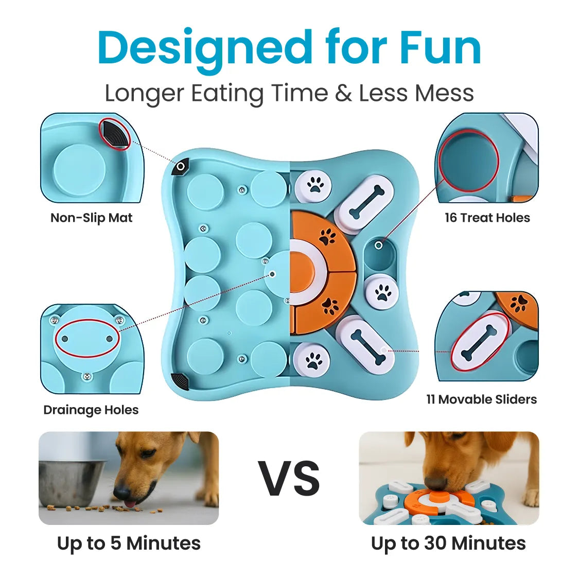 Transform your dog’s eating routine into an exciting challenge. With 16 hidden treat holes, 11 movable sliders, and a non-slip base, this puzzle feeder encourages natural foraging instincts while slowing down fast eaters. The built-in drainage holes make cleaning easy, and the interactive design keeps your pup busy for up to 30 minutes - turning mealtime into playtime while reducing boredom, mess, and unhealthy gulping.